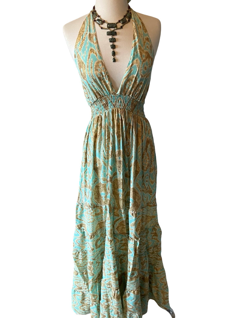 • Halter Maxi Silk Dress (aqua)